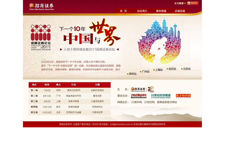 "招商证券论坛"自2006年由招商证券独家主办,是以资本市场为核心话题的专业财经论坛。该论坛立足中国本土背景,兼顾宏观经济,注重全球资本市场的发展趋势,具有广阔的视野和较高学术水平。并且吸引了国内外学者、专家、资本市场人士及媒体的关注,众多国内外知名人士,曾先后在论坛上发表了他们对资本市场独到见解。