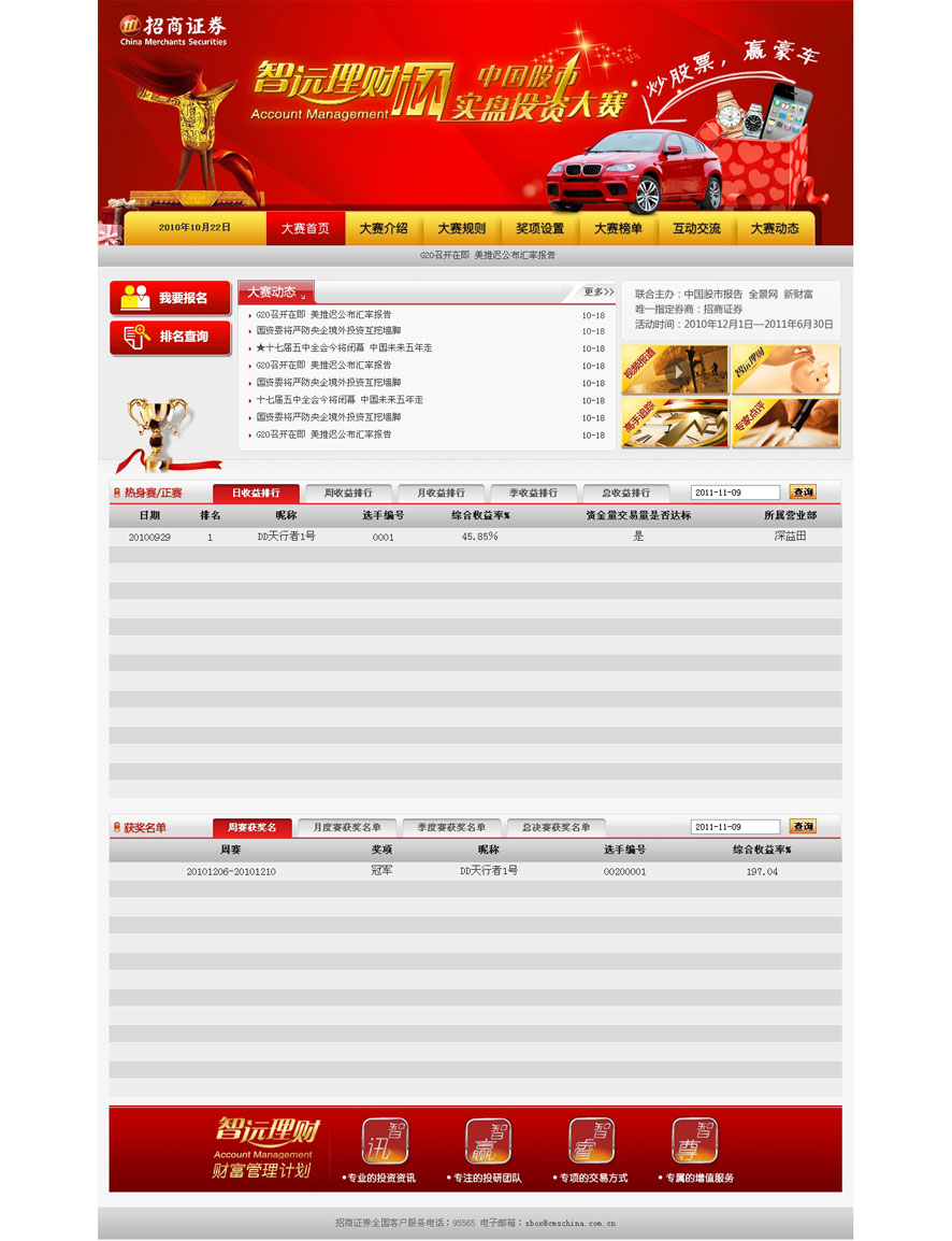 招商证券-实盘投资大赛 为庆祝招商证券成立20周年,招商证券和深圳音乐厅一起精心策划了"缤纷夏日演出季",与客户、员工、合作伙伴、社会公众一起,分享非凡的艺术之美,华章之悦。并借此希望更多百姓、喜欢音乐的人们能够走进音乐厅,感受音乐的魅力,让高雅音乐在大众中普及。此次活动结合网络宣传及推广,进一步扩大影响力。 返回列表>> 上一篇:招商证券-亲子教育 下一篇:招商证券-网上交易 安全控件